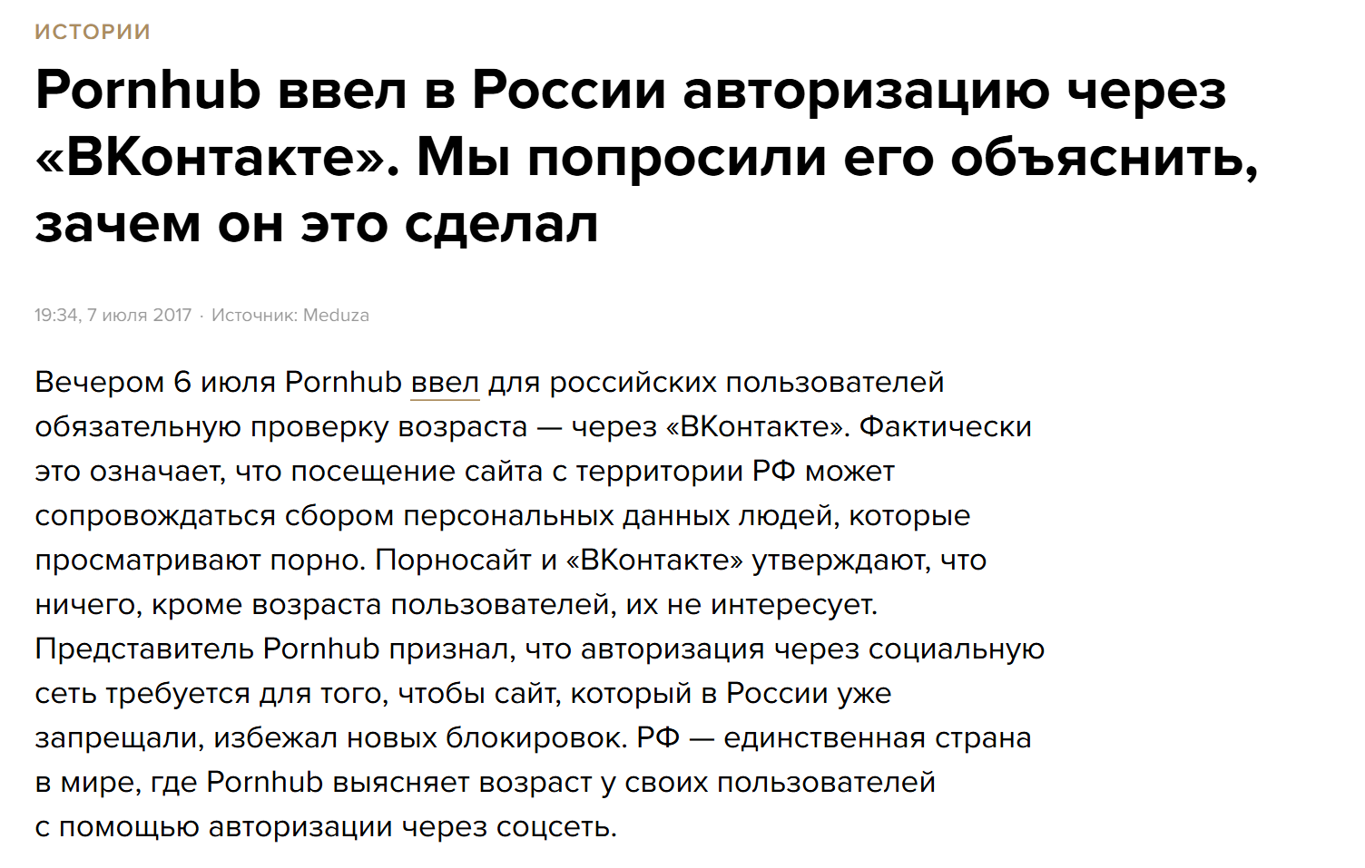 Кстати конкретно с порно хабом дело то не в РФ. Это западная контора они же снесли 80% своих видео. Им приказали и они снесли. РФ им в штаны не насирала, просто то, что они вот такая ОГРОМНАЯ площадка и там много денег, вот её модерируют.