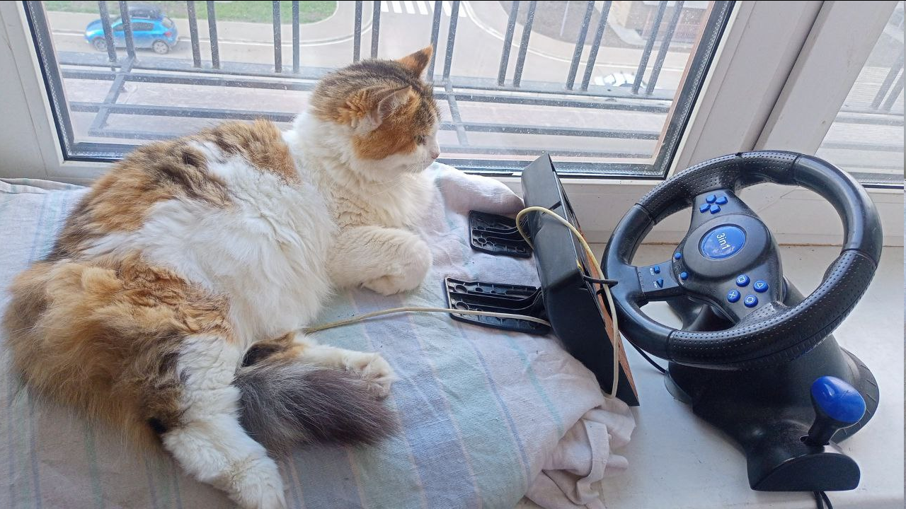 Руль с педалЯми, внутри оборвался тросик, видимо решили не чинить а выкинуть. Чуть-чуть отвертки и клея, получился геймерский девайс. Правда дешманский.