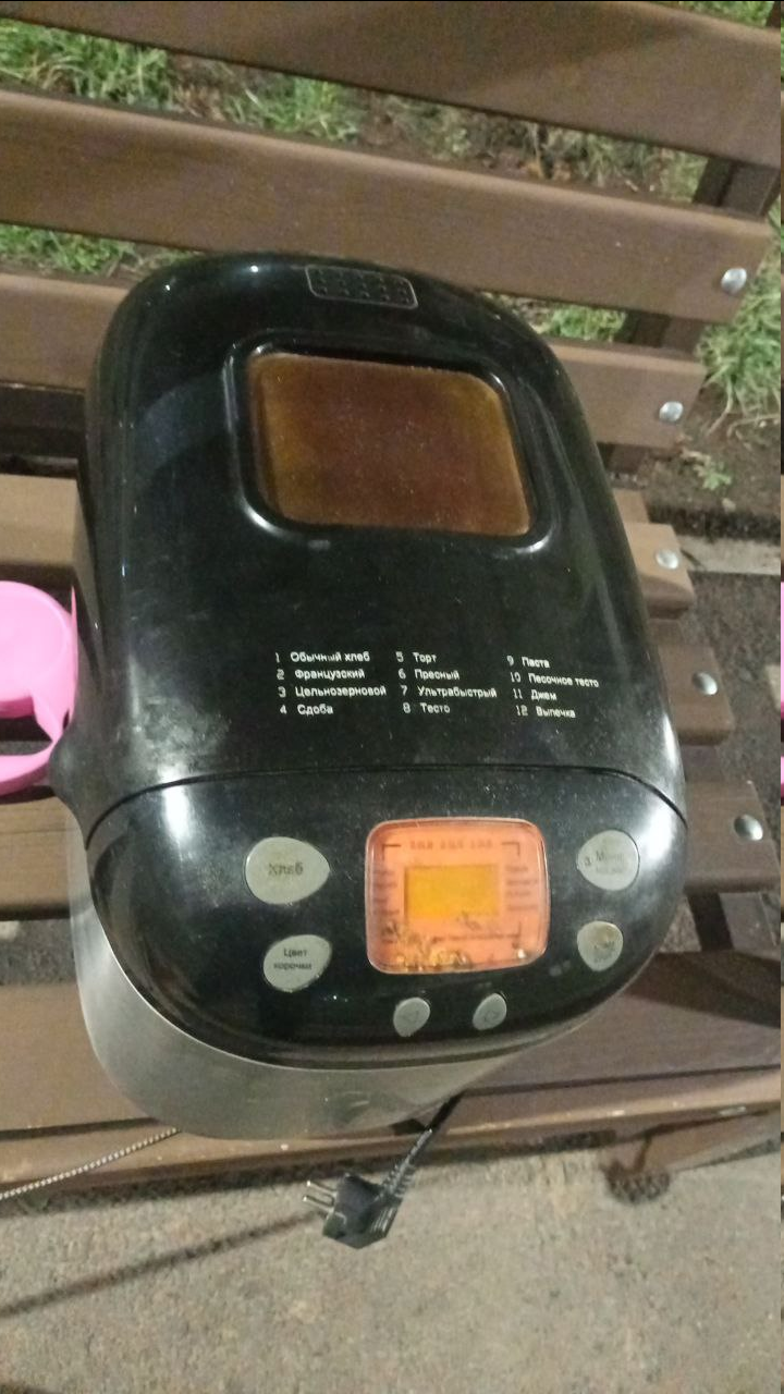 Хлебопечка. Чаша ушатаная, за две тысячи купил новую, остальное в порядке. Ну конечно отмывать её пришлось основательно, в жире была.