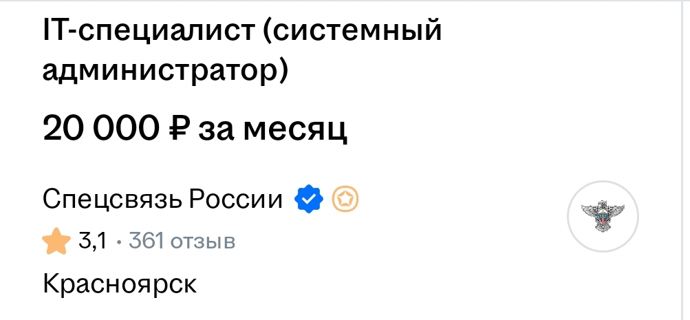 К тому-же сейчас наваливают ограничения, ЕСПД, весь интернет делают через ГосУслуги, катят всё в линукс, добавляют новые ФЗ что-бы еще поглубже засунуть админу пыпыску в попу. Я на такое готов только за деньги. Или за 50к обслуживать компы. Как-то так.