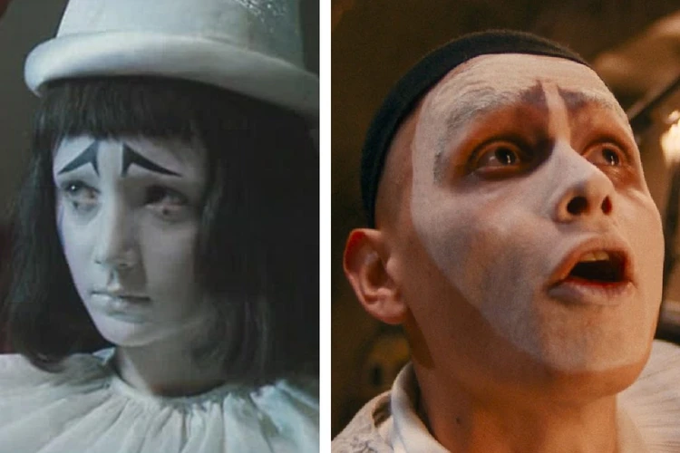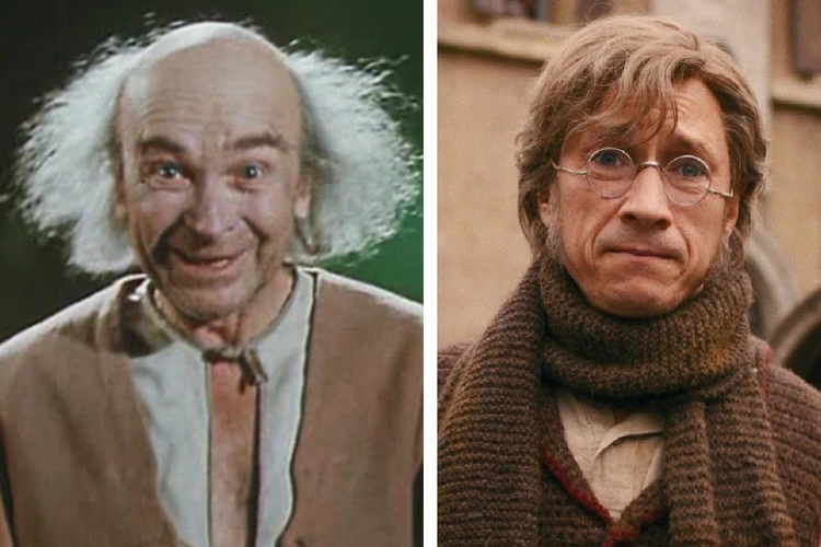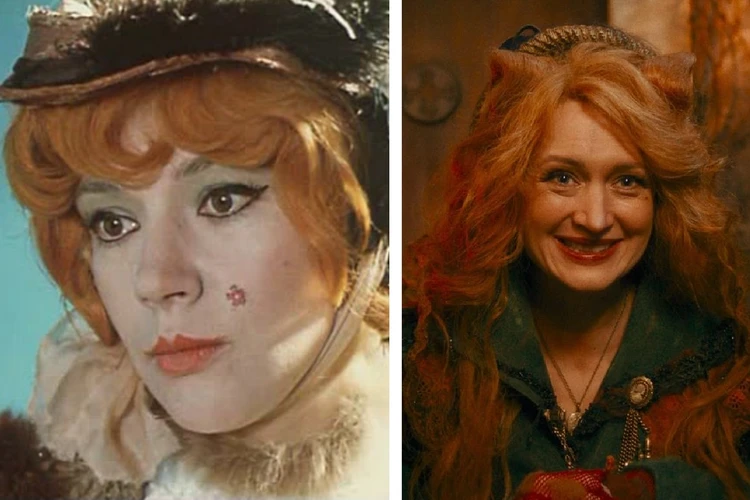 Актер Марк Эйдельштейн в роли пуделя Артемона в фильме «Буратино» (2026) и Томас Аугустинас в образе этого же персонажа в картине «Приключения Буратино» (1975)