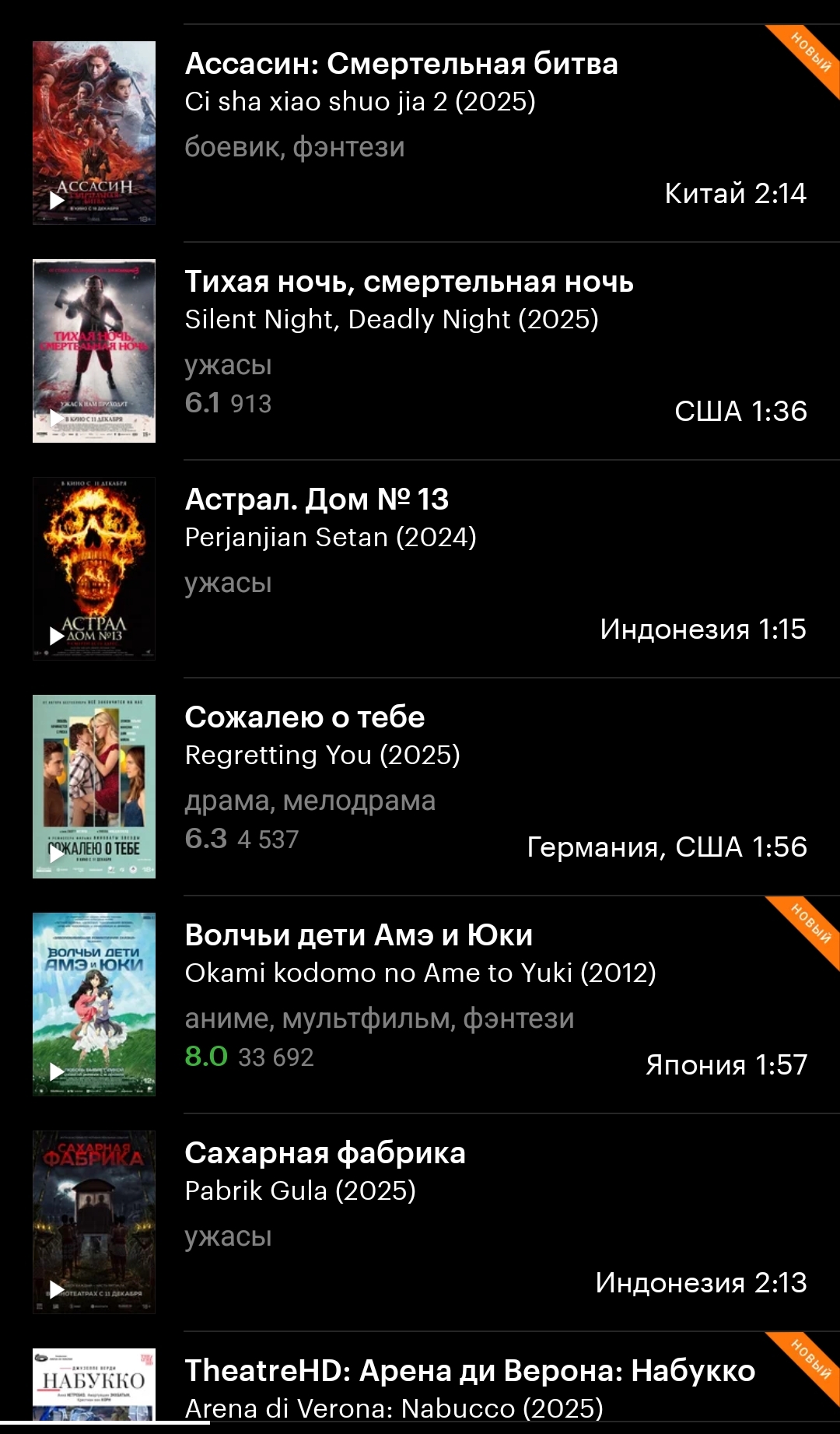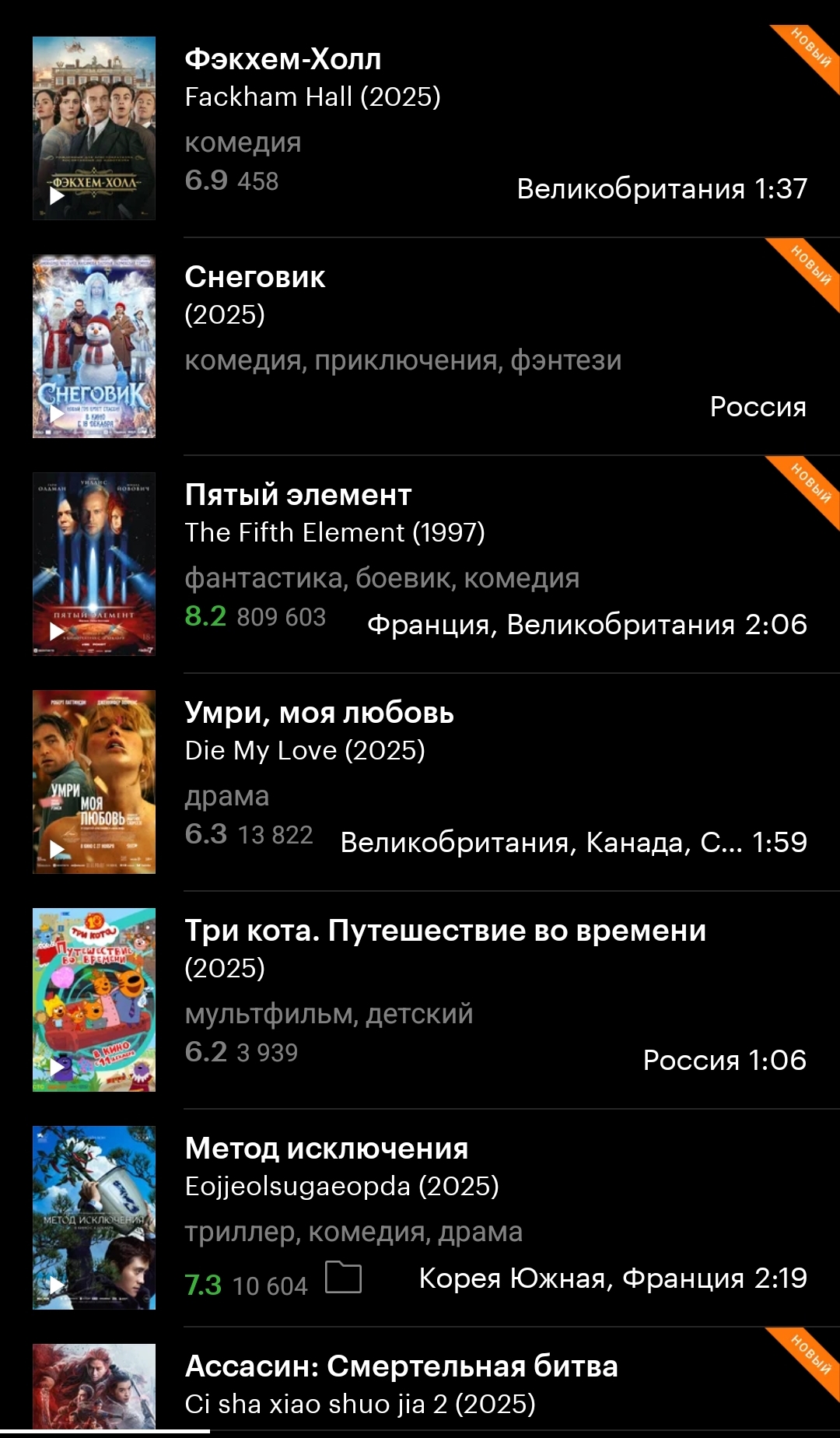 >>327978278 Я хз, в моих ебенях на афишах была солянка из скрепных комедий адриастяна и всяких дефолтовых западных мувиков не все из которых у нас полностью легально, наверное, удивило аниме не ожидал что будет, в целом посмотреть дома тупо комфортнее. >>327978297 Пятый Элемент 1997