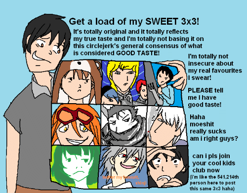 >>327982495 >какую-то ноунейм хуйню постить, А что нужно постить, только из хайповых тайтлов? А что делать если во всех хайповых тайтлах персонажи карикатурные картонки для детишек не имеющие ничего общего с ИРЛ, и мне там просто не с кем ассоциировать себя?