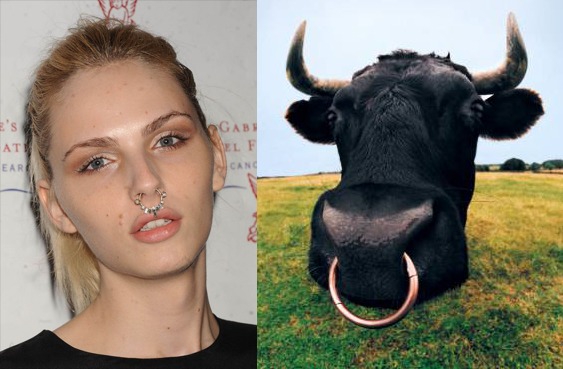 Да вы блядь не поняли. Я не говорю про весь пирсинг, вообще похуй, наоборот часто пиздато выглядит. Но откуда блядь пошла мода в носу именно так носить кольцо? Этой хуйней даже тяны занимаются, которые вообще больше пирсинг не носят. Так носить кольцо просто НЕКРАСИВО блядь, самое уебанское место где его можно носить. Ну вставь ты сбоку, вставь в губу, вставь в бровь, нахуя его в нос так сувать?