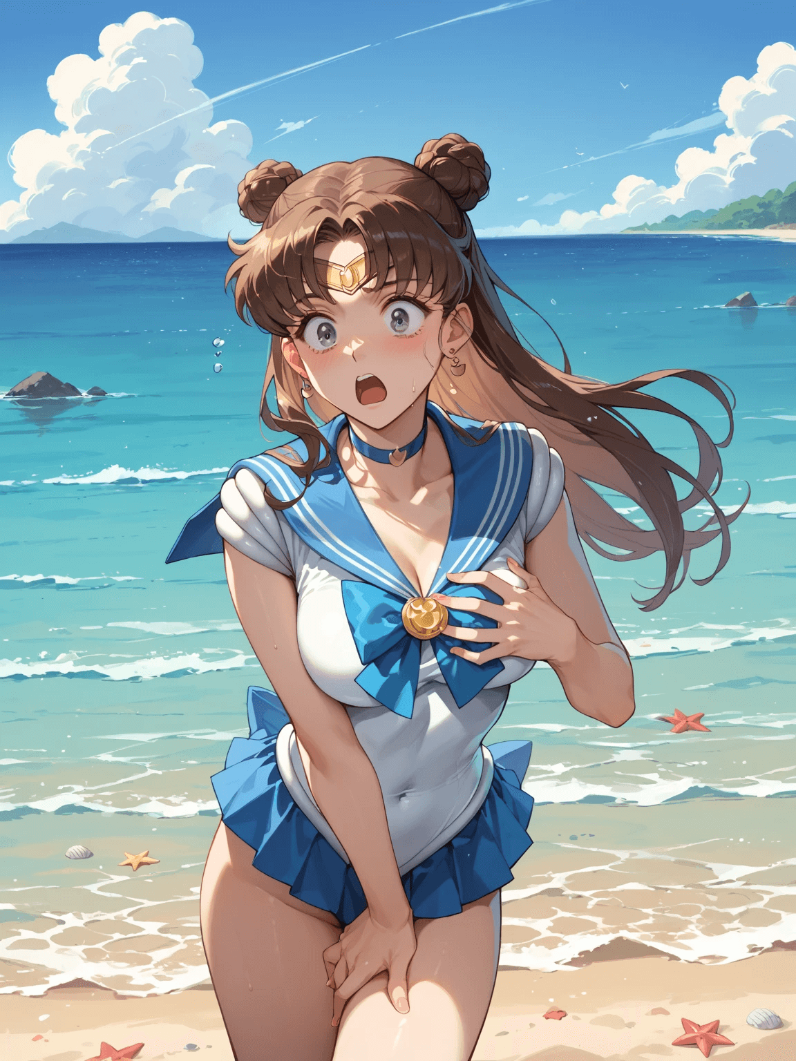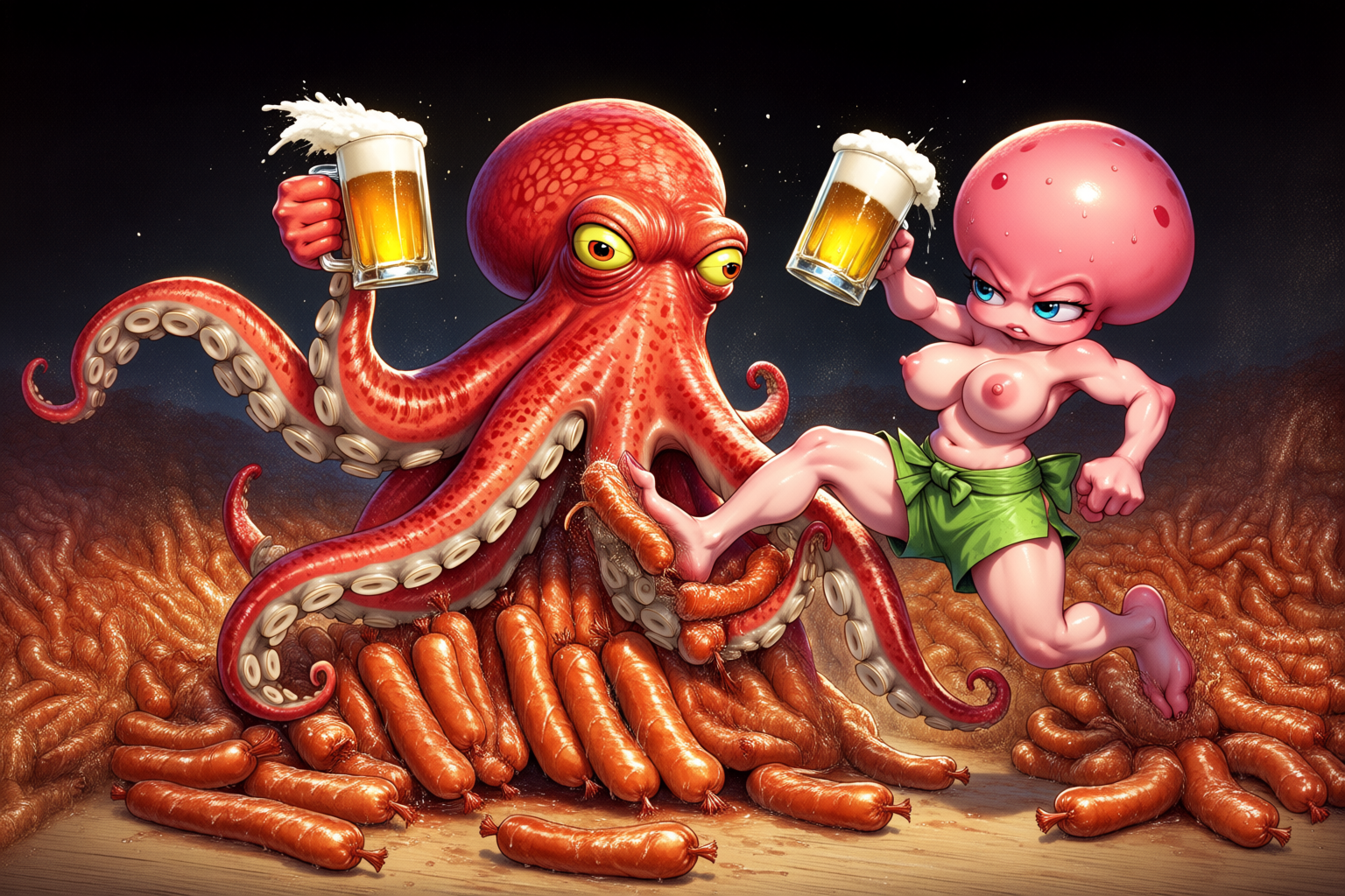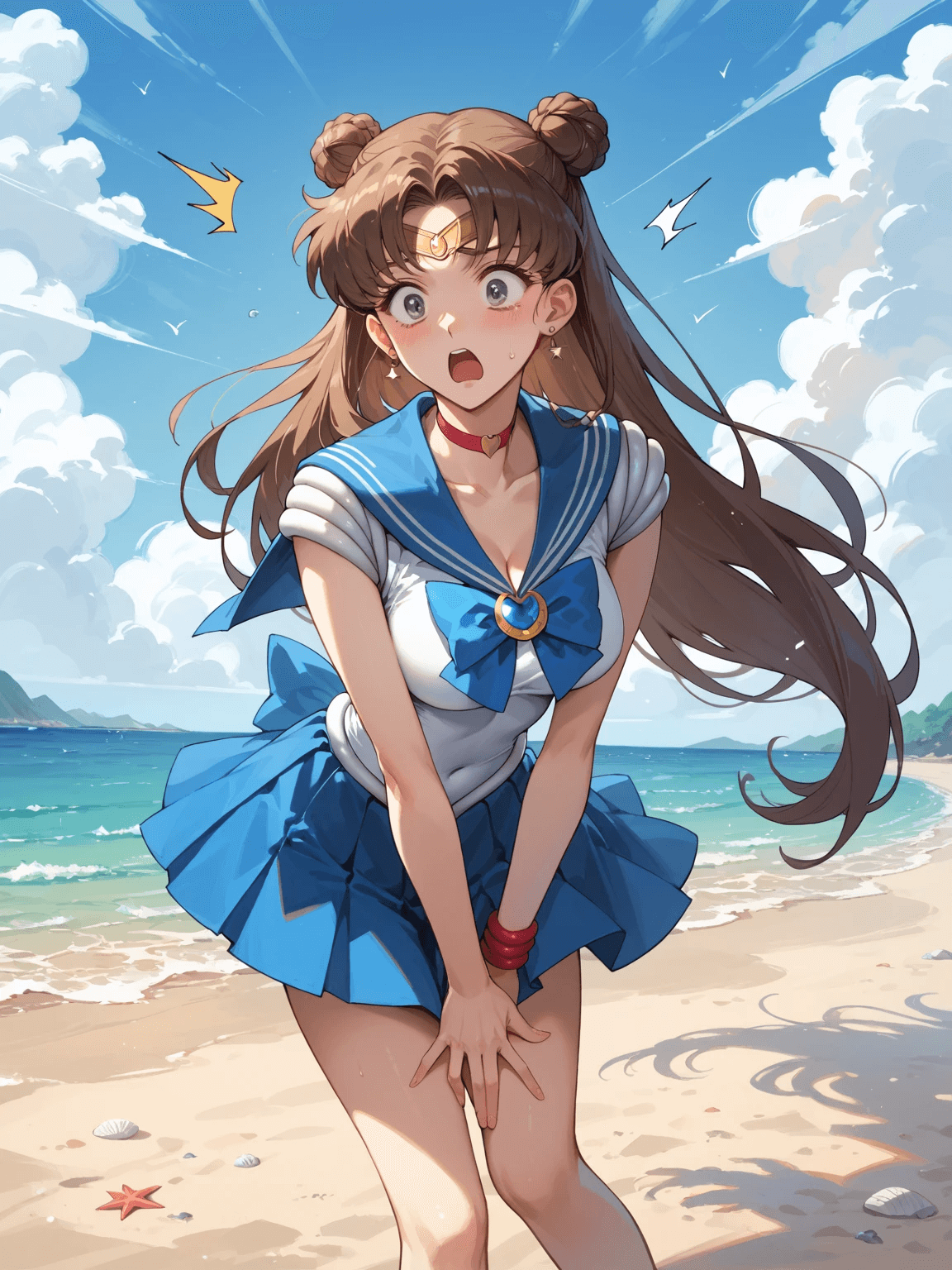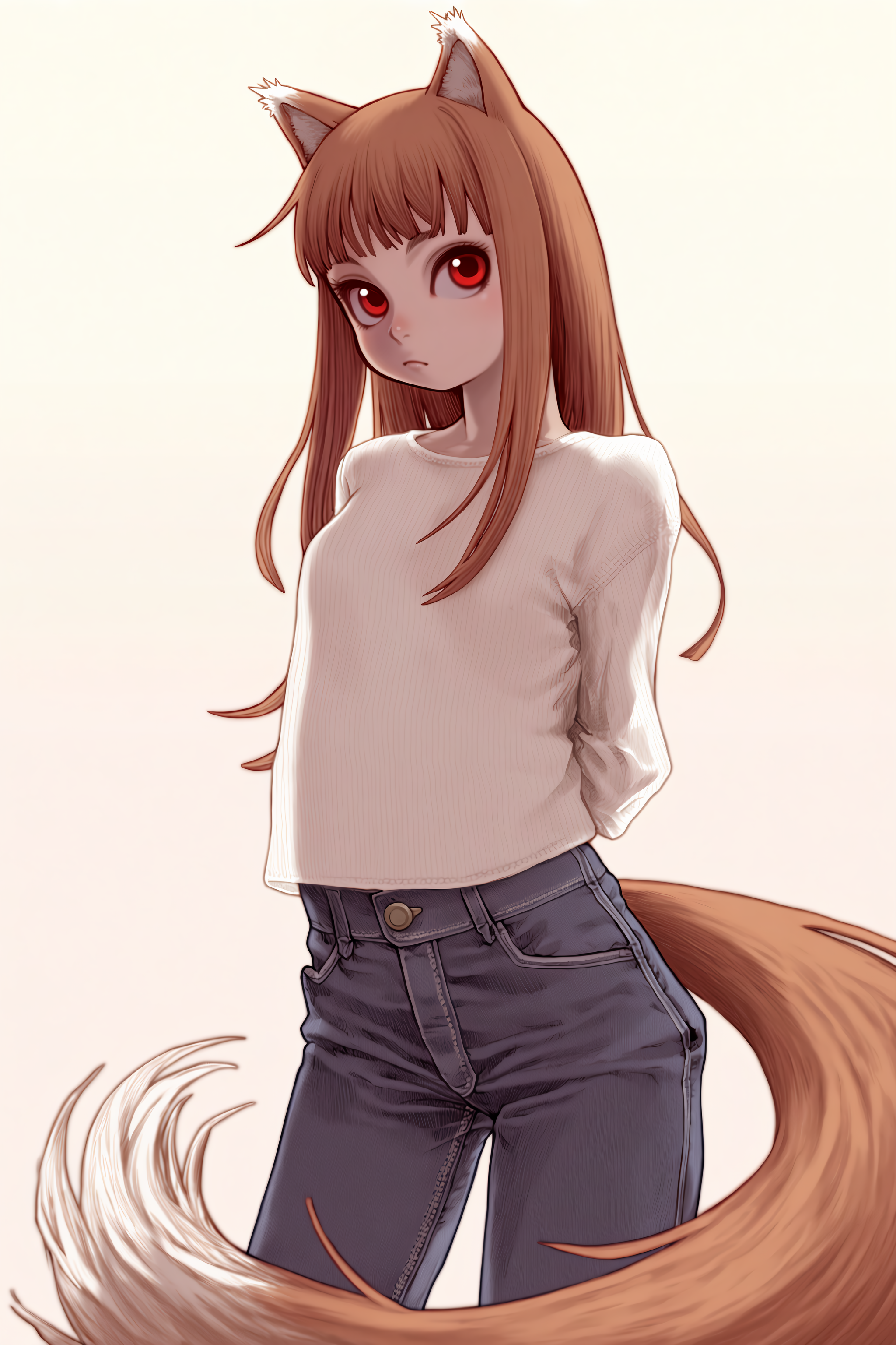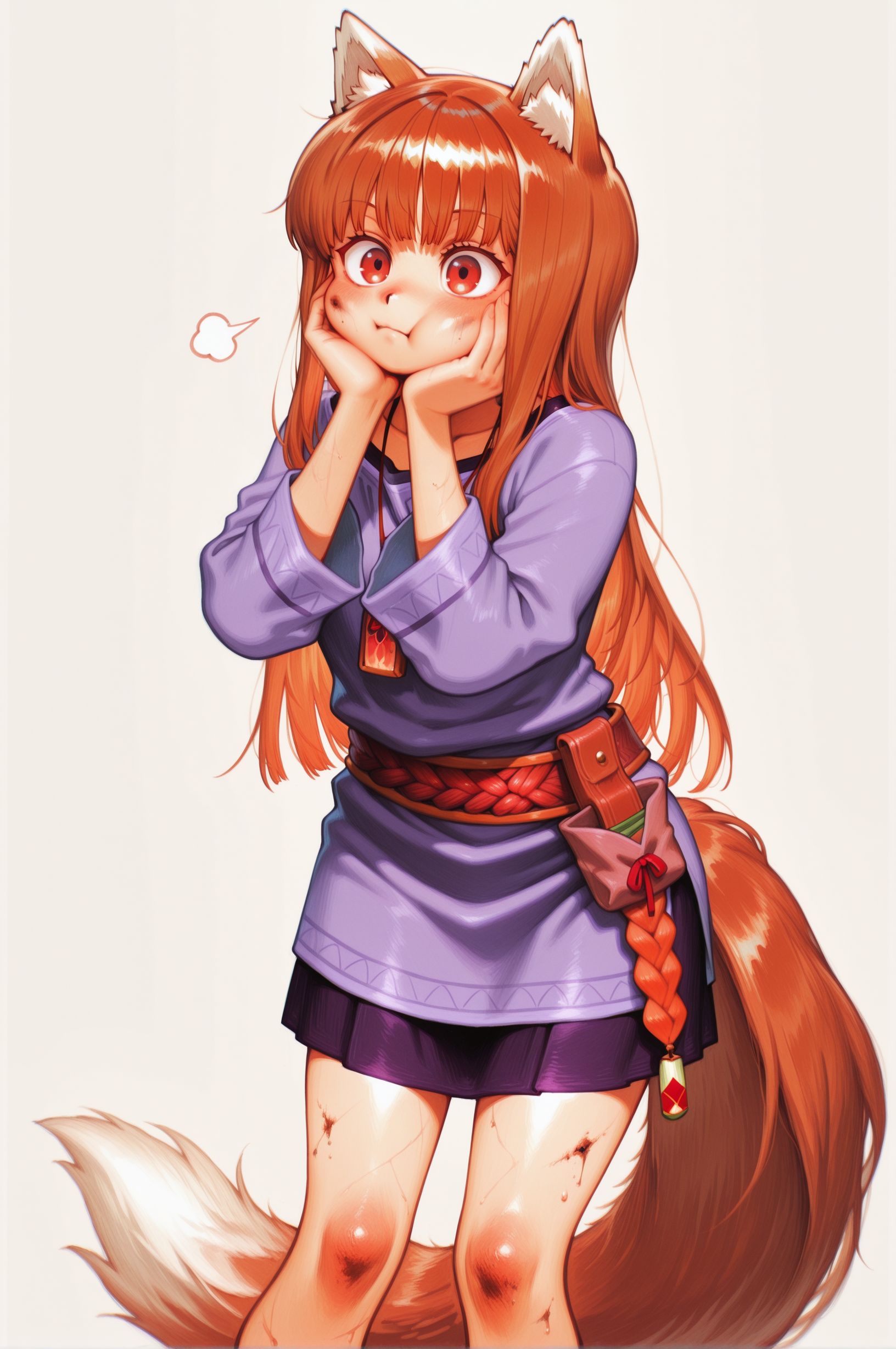 Сгенерируйте как Холо (Хоро) стоит с чистыми коленками после душа и двигает ими туда сюда (in motion) типа танцует, а мать анона которая ебалась с волками завидует ведь она с грязными коленками и в какашках.