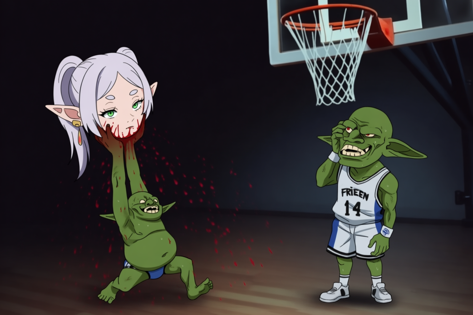 >>330198701 А нашей Фрыней накормили толпу Гоблинским кулаком растоптали ей грудь Всенародной свободой разорвали ей плоть Так забрось трехочковый ее головой