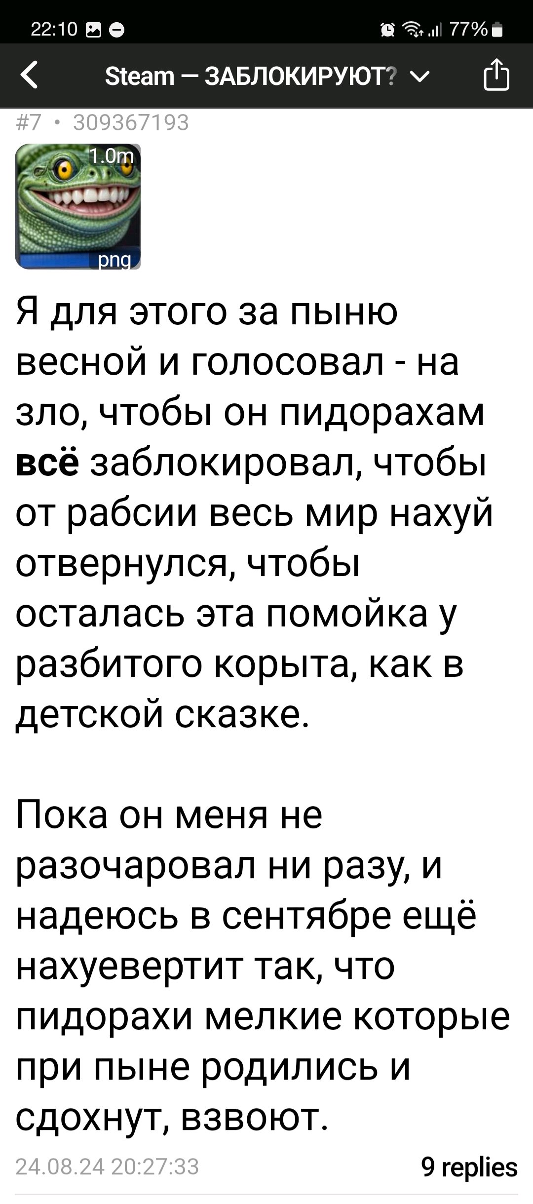 >>330205137 >ВК Игры готовы смириться с жирным конкурентом под боком Ты думаешь дядушка гейб просто так удалил все порно тайтлы для этой страны? Думаешь дядюшка гейп не любит шекели? Думаешь у дядшки гейба меньше власти чем у вкшечки? Более того, сколько там вк игры приносят? В общем ты говоришь то о чём не знаешь >с ВК Видео и Рутубом vs Ютуб Юутуб не имел представительсва в росии, это первая причина его замедления. Любое политическое решение не принимается в вакууме. И оно не принимается из воздуха. Конечно пришли люди из вк и такие: замедлите ютуб, а то вк клипы kpi не выполняют. Но их блочат не от того что кто то пришел и попросил, точнее это повод. Но никак не причина. Рутуб вообще тут с боку. То же и с максом. Желание вк это лишь повод, не будь причин, которые куда серьёзней, вк бы провели шершавым по губам. >>330205024 >Почему лахта так усиленно перефорсит кирпичи? Может форсит? Почему перефорсит? Забавно что Украина умудряется привносить свои ценности даже на окупированные территории, лол. Ты конечно сравнил... Ой не забудь. Это был детектор. Ты задетектился. Иди с кем нибудь другим пообщайся, ципсошник. Это фильр от долбоёбов. Ты сагрился, мне не придётся с тобой общаться по существу.