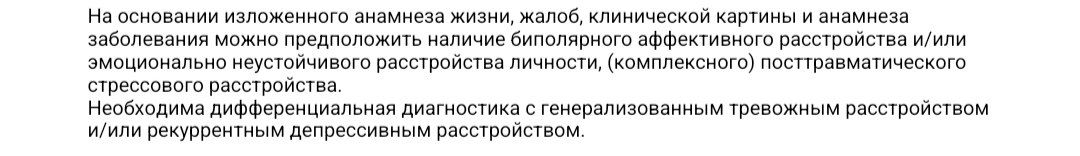 Не считаю себя ненормисом, скорее просто странненьким немного В дурке не лежал а диагноз мне в итоге так и не поставили: хотели БАР 2 типа, потом шизофрению (я подозревал в этот момент шизоаффективное), потом острое преходящее психотическое расстройство+ПТСР ну и депру. Жалобы у меня преимущественно были на депрессию и на навязчивые мысли, галюны конечно хуета, но только визуальные, на слуховые уже по большей части похуй. Из хуйни но на которую не жалуюсь тревожность+социофобия Не знаю, куда определят, скорее никуда. Но если кто то хочет то спасибо за ответы