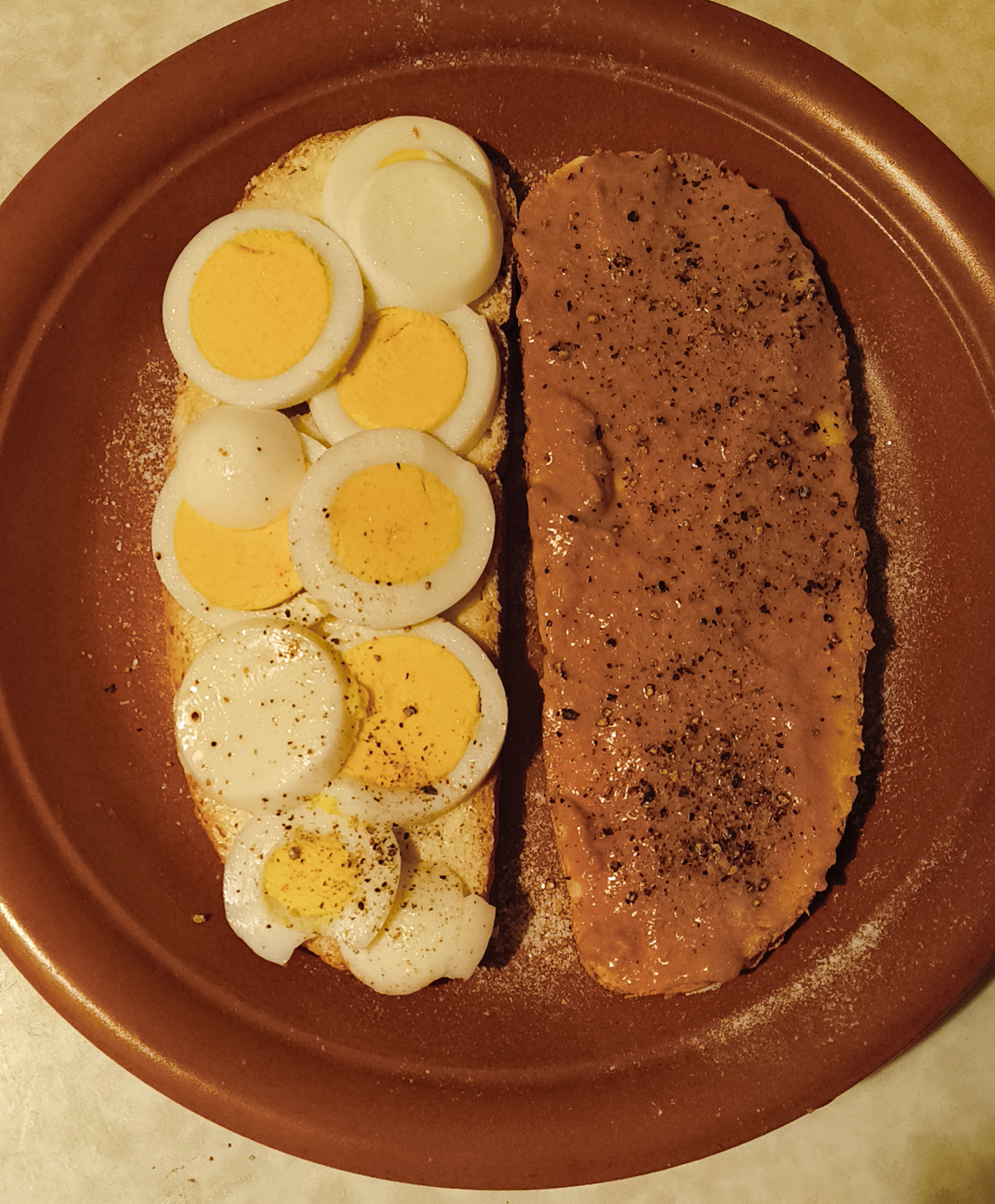 В условиях отказа от Русских энергоносителей, спидорвахе нужно хорошенько подкрепиться сутра, чтобы не сдохнуть от голода и холода уже к обеду. Поэтому пидораха берёт свиной жир, жарит его в растительном жире, в этом же жировом месиве жарит яйца и хрючит это с жареным в жыре хлебным продуктом, на 60% состоящим из сахара.