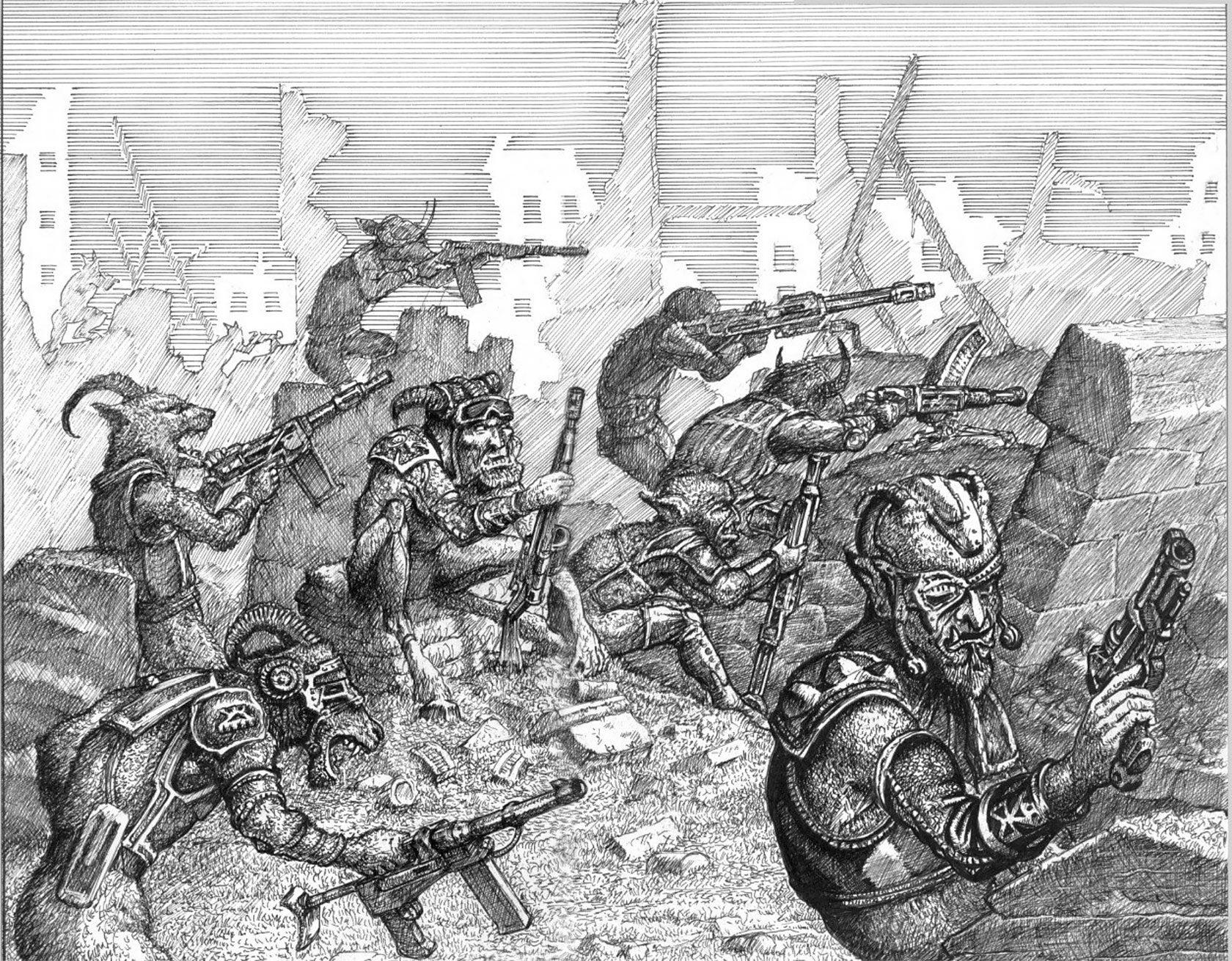 Ну а сороковник родился уже как плод инцеста WFRB (куда уже начали вставлять отдельные НФ-ные элементы, что в 1980х было пиздец как модно) и Судьи Дредда. Да-да-да, теперь ты понимаешь откуда ноги растут, все эти банды, хуянды, подулей. Там вообще много чего интересного было поначалу.