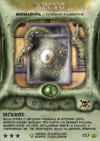 Сап, двачеславы. Вот уже неделю пытаюсь вспомнить настолку из детства и медленно схожу с ума. Нейросеть упорно несёт хуйню и придумывает названия, так что решил обратиться к живым аутистамзнатокам. Суть настолки - киберпанк/постапок сеттинг, несколько фракций борются за победу на гексагональной карте города по которой ходили фишки отрядов, точно помню что там была механика с отрядами и карточками для каждой фракции. Там точно были мутанты и люди/киборги, была боевая техника - все в виде карточек. Живо помню одну из них, мутант с названием Аргус/Аргос и иллюстрацией типа зелёной амёбы с глазами.