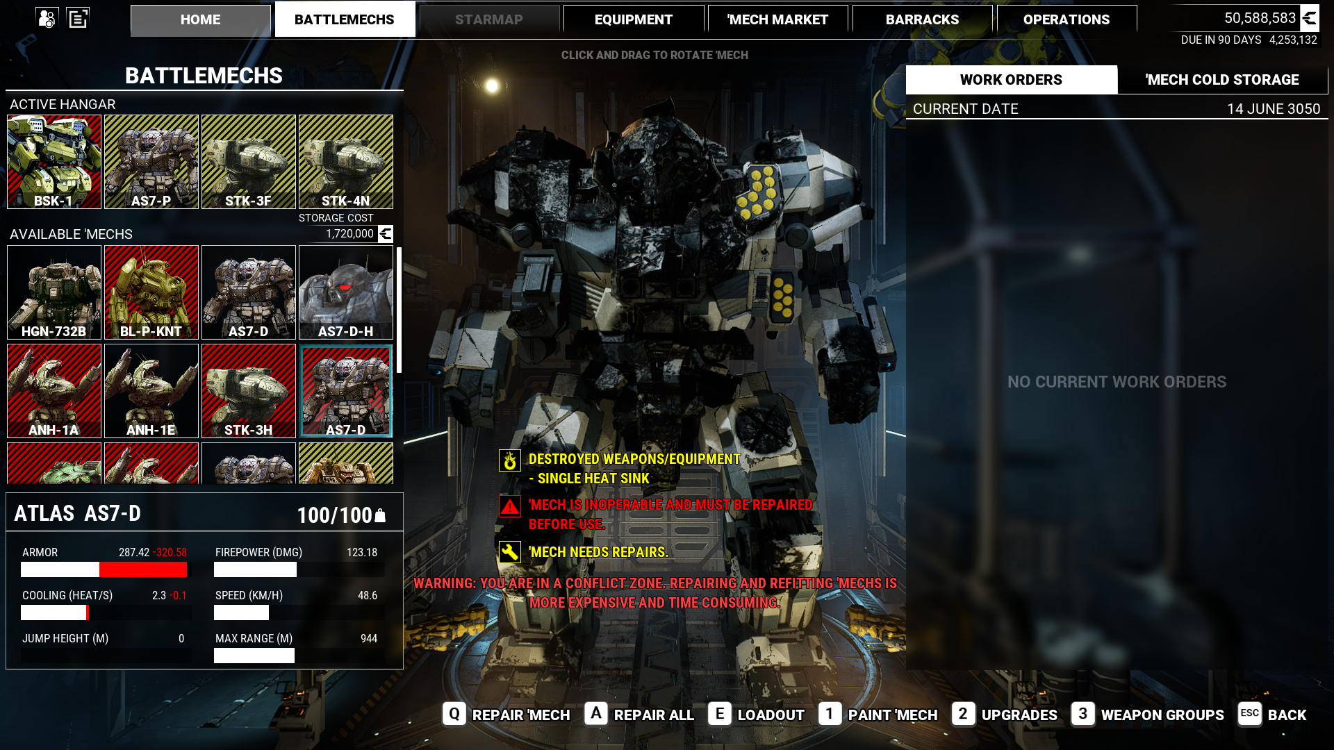 >>1598645 И да, старые редакции (1, 2, 3) будут плохо совместимы с новой редакцией доп.книг по БТ, про ремонт/снабжение/экономику. Или вооружаться напильником или стыковать 1-2 с мерковскими книгами фасы на 3025 или 3050/3055 (ага, в них правила между собой тоже разнятся) или 3 (ага, там основной бросок 2d10 вместо 2d6) c мерками изданными каталистами/фанпро. Один хрен они за тебя не сыграют, сам задаешь тон, а правила только как костыль использовать (и не забывать его откладывать в сторону, когда мешается). В принципе можно приспособить MekHQ ( надстройка к мегамеку), где есть вот это ой все межбоевое, от закупок до межзвездных перелетов при чем можно по разным рулсетам запустить. Вот только я не помню, работает ли эта опция по сети, вроде нет. Имхо, самое простое (если нужны ролевные персонажи) значимых персонажей генерить по Time of War для ролеплея и фишек, которые используются в CampainOps и дальше использовать сугубо БТ. Просто рядовой пилот и снабжение это очень далеко друг от друга. Для примера - пилот-регуляр в месяц получает зп в 1.500, средний лазер стоит, емнип 40.000. А лазер, словивший крит - под замену. Тонна боезапаса к lrm тоже дохрена стоит, а это всего 6 выстрелов на lrm-20. А какой-нибудь сраный локуст/васп за миллион стоят.