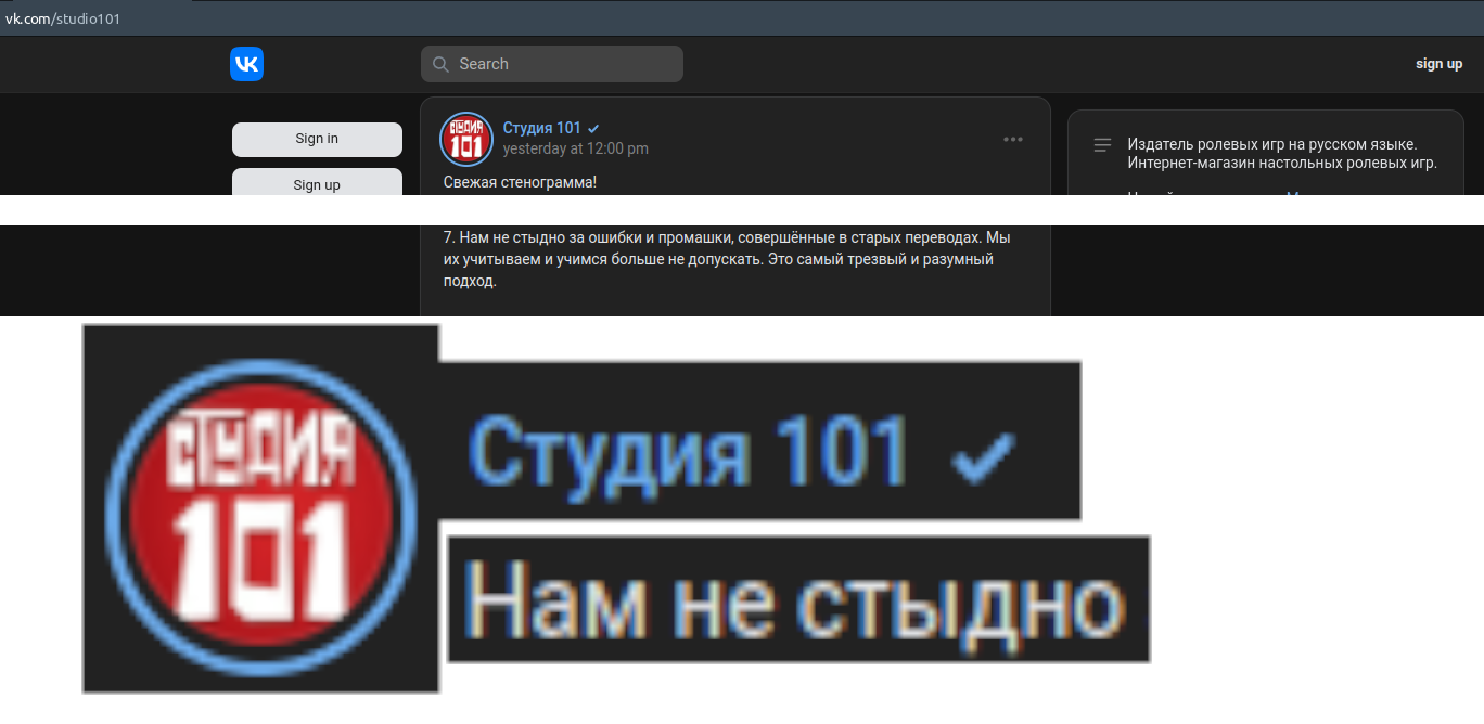 Критические косяки по механу вроде неверных статблоков, неправильных точек на дисциплинах с завидной регулярностью хуярит и никак не исправляет только студия. Если бы тебя не раз тыкали в проблемы в твоих книгах после верстки, то стоило бы дать по бесплатной пдфке паре человек, чтобы они прошлись по сверстанной книге глазами. Хрен с ней с вахой, там студия вечно ссылается на хуевый договор, который они заключили с геве. А чего там по эрратам для вампиров? Где список изменений для Кориолиса? Там же """вторая редакция""", поэтому счастливых покупателей первого тиража шлем на хуй? Те же ХВ, когда их тыкнули в то, что в выпускаемых ими приключениях отсутствуют статблоки монстров из не выпущенных ими книг, перевели, сверстали и выпустили их бесплатно. Не знаю кто за это в ответе, но все купившие приключения благодарны за это. При обнаружении косяка в таблице барда выслали наклейки для исправления косяка в механе. Проблемы известны давно, и пока ничего не сделано для их исправления. Дополнительная вычитка менее невнимательными глазами сверстанной книги, относительно оперативная эррата и изменения в пдф уже бы улучшили ситуацию и не потратили бы много времени.