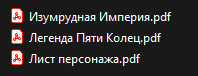 Shadowrun 6 редакция, скрин хоббиков, + Свободный Сиетл Sixth World хак в стиле Тенебега на Данжн Ворлд Блак Крусейд - доп для Тзинчитов."Книга Судьбы"+ доп для Слаанешитов + Крутой Хоумрульный рулбук Блак Крусейд Фейт многие конспекты заменены на книги от Индиго Геймс. ПБТА хаки: Йарр, капитан, йарр. cbrpunk хак. Новая игра по Дюне, основанная на 2d20. Японская Нри: Звездные рыцари Серебрянного меча Зов Ктулху - книга Хранителя от Хоббиков + Зов Ктулху лист персонажа + приключение Идол Тота Кориолис_Третий_Горизонт_2_редакция Приключения в Средиземье (новый скан) + семь приключений Киберпук Ред КорБук Киберпак 2020 новый перевод, более качественный и полный + дюжина приключений, подходящих в принципе для любых КП систем Дельта Грин: Справочник Агента и Куратора, Аксиомы Альфонса для агента, Выжимка Правил, много сценариев Красная Земля от фанатов, редакция 1.5 на Вторую Редакцию Саваги + Модуль "Черная Роговщина" Красная Земля 2 на Фейт. MausRitter ОСР Мышиная Стража Возьмак: Игра Воображения. Оригинальная игра из 90х, написанная польскими фанатами до всяких ваших + три допа для нового Везьмина: Том Хаоса, фургончик Родольфа и Снаряжение Ведьмака City of Mist Небонавты с заводной башни МОРК БОРК : Наследник короля теней Мелкие игры: НКВД (внезапно игра 2006 года от русских), Белый Шум, Туманы Венеры, Восьмое звено. Новое приключение для ДнД Базик Сет: B7 Выделена новая папка под ОСР,позже будет забита Хроники Тьмы для мира тьмы (система для игры людьми) Дарк Хереси первая редакция, обновлены многие переводы + Последователи Темных Богов Рог Трейдер : Два приключения, одно описыват темных эльдар. Доп к Десвотч