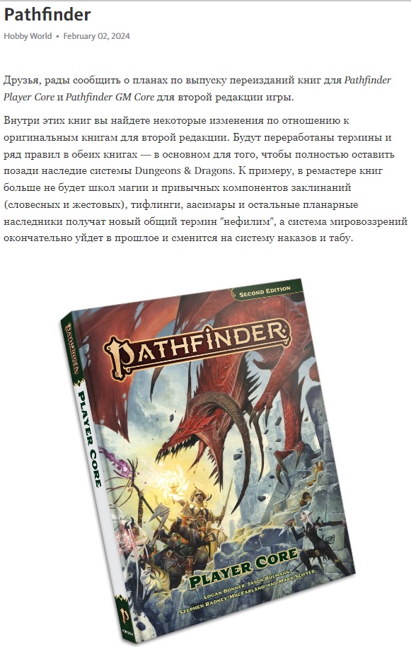 А как вообще вкатиться в Pathfinder 2Е ньюфагу? Вот я, например, поиграл в Wrath of Righteous, проникся атмосферой, скачал и почитал "Путеводитель по региону Внутреннего моря", ещё более проникся лором. Захотел освоить правила, но запутался в редакциях (не в смысле 1-я и 2-я, а разные издания 2-й, какой-то ремастер, эрраты и т.д). С чего начать изучение правил, чтоб потом не переучиваться? И где лучше искать потенциальных сопартийцев и мастера (я хоть и из ДС, но в целом хикка)? И вообще, неплохо было бы подобную инфу оформить гайдом и закрепить в шапке треда.