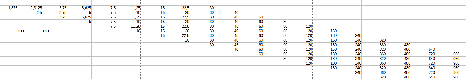 В целом сходится, кроме небольших округлений. Ну и вторую половину затюнить. Возведение в степень, так то не нужно, там числа просто удваиваются - 40, 60, 80, 120, 160, 240...