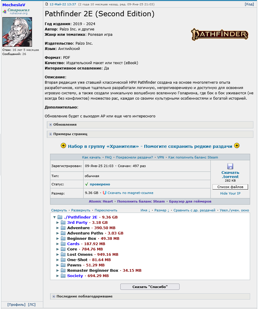 Альтернативные бланки персонажа для ПФ1 и СФ, в том числе на русском: https://www.dyslexic-charactersheets.com/ Рулбуки скачать бесплатно без смс: К сожалению, авторы тратят все три действия и реакцию в раунд на страйки архивов с рулбуками. Торренты, шаротред форчана, русек-тред и группы по ПФ впаше наше всё на сегодня. База данных Игроков и Мастеров: http://vk.com/vbazetrpg Мне не нравятся предложенные вами модули, хочу другие: https://adventurelookup.com/adventures