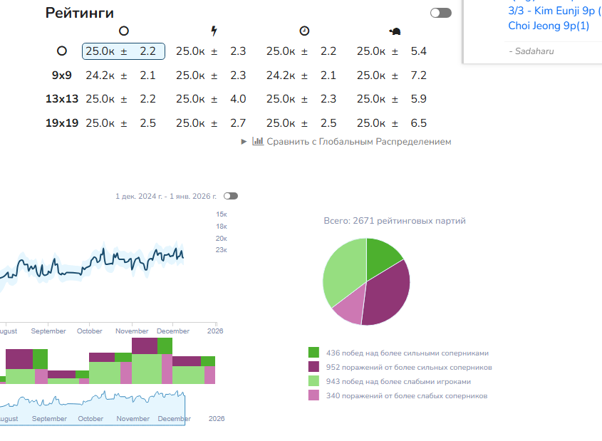 >>1647435 ОГС подбирает исходя из рейтинга. Там при создании вызова можно указать желаемый. Это вполне адекватный критерий. Только надо иметь ввиду что всё что ниже 25к считается как 25к, потому что там очень тонкая грань. Ниже 25к это буквально не знающий / не понимающий правил. Разобрался в какой-то основе и вот у тебя уже +1 кю. Если ты тот анон который недавно начал играть, то всё ок, скоро ты разебрёшься и будет стабильно 25к.