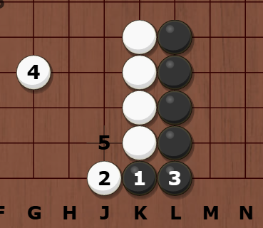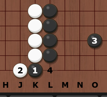 >>1647439 Ахаха, я сейчас учу дочку играть, она тоже всё время попадает в эту фигню. Первый скрин - мирное закрытие, инициатива остаётся у чёрных, территория поделена поровну. Второй скрин - чёрные подлезли, белые закрылись, чёрные закрылись, итого у белых -2 очка. Третий скрин - чёрные подлезли, белые ответили, чёрные проебали. Камень 1 снимается после постановки белыми в 4. Чёрным придётся закрыться в M1, потом белые соединяются в K1, ччёрные M2. Итого чёрные -2 очка. Инициатива у белых. Наконец четвёртый скрин чёрные подлезли, белые закрылись, чёрные соеденились, белые проебали. Вангуюю как раз твоя ситуация. Чёрные тогда ставят в 5 и начинается ОБЛАВА по прямой, из которой уже не спастись если не будет своего камня на пути облавы. Потери белых тут могут быть огромны, инициатива у чёрных.