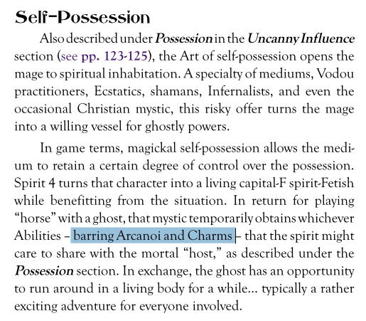 >>1631368 Не, магос становятся один раз. Временную одержимость можно делать через Дух 4, но на это время магия сфер блокируется, замещаясь чарами вселённого духа.