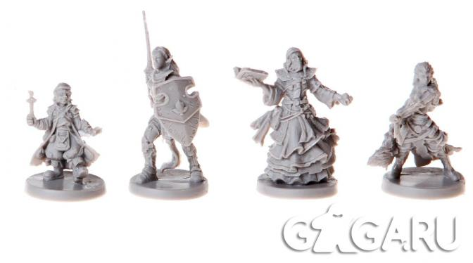 Еще там продают миниатюры, которые имеются в двух вариантах: 3D миньки с другим скульптом и копии из смолы от Shiboard. С этим человеком у меня был опыт работы и оценить его я могу как неоднозначный. Печатная продукция оставляет желать лучшего, из нее самое страшное то, что он отправил мне карту героя с одинаковым принтом на обоих сторонах. Сами миньки нормальные, но, как и любое литье, хуже по качеству и более ломкое, чем пластик.
