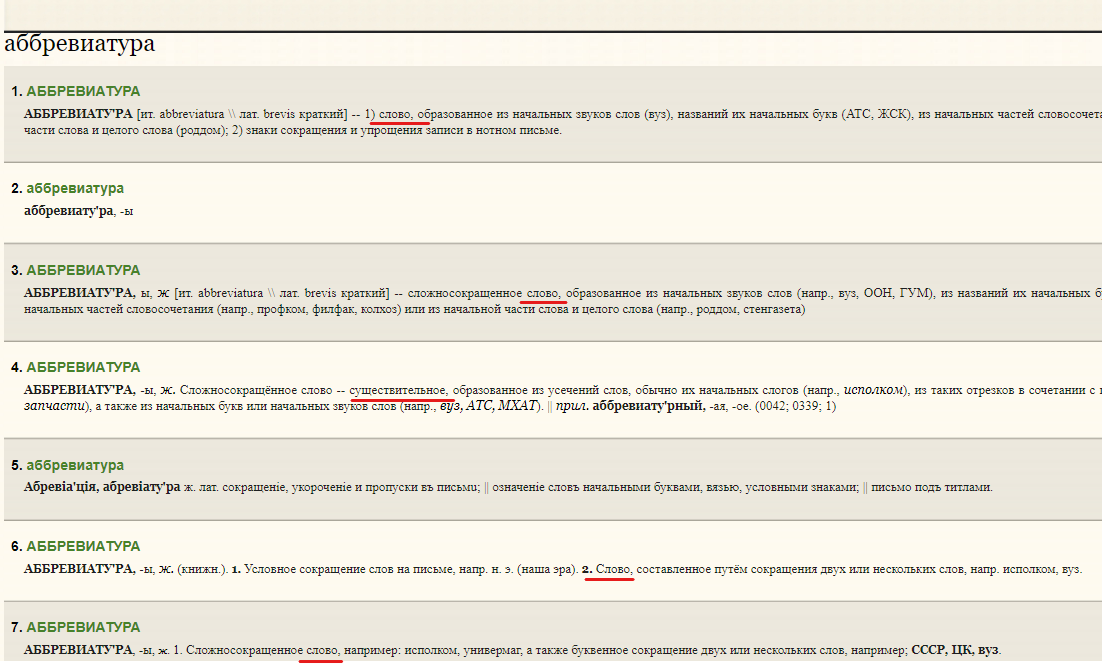 Аббревиатура — слово, образованное сокращением слова или словосочетания и читаемое по алфавитному названию начальных букв или по начальным звукам слов, входящих в него.