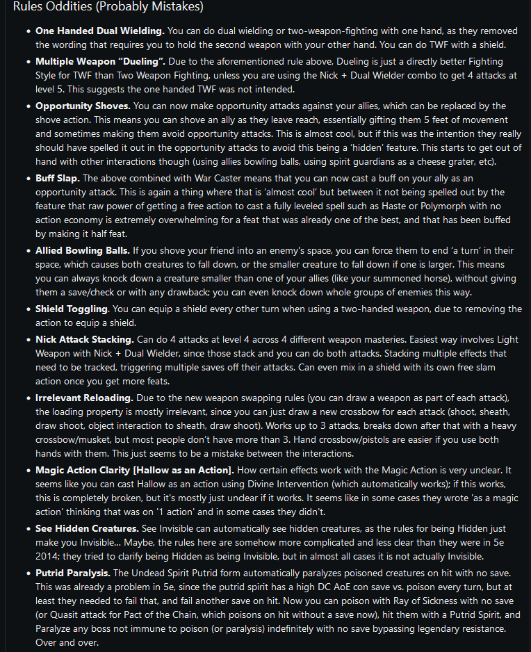 Пока что все выглядит крайне поломанным. Билды с параличом без спаса, скрытые = невидимые кастеры, оглушение которое не останавливает движение, и так далее. К этому должна выходить эррата на 10 страниц в день релиза книги.