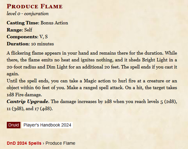 >>1636392 В 5-ке, ты мог метнуть огонь в момент каста, а мог оставить светиться в руке, и мог выключить его дисмиссом. В 2024, ты можешь только скастовать свет, а в следующие раунды метнуть, и дисмисса нет. Для настолки это нерф, поскольку ты не можешь кинуть в момент каста, а также не можешь добровольно его погасить не метнув, что чревато поджогом. Это сделано сугубо для удобства компьютерных игр, потому что так вместо двух кнопок (скастовать для света и скастовать для метания) будет одна (скастовать для света), а потом вместо двух кнопок (метнуть или погасить) тоже будет одна (метнуть).