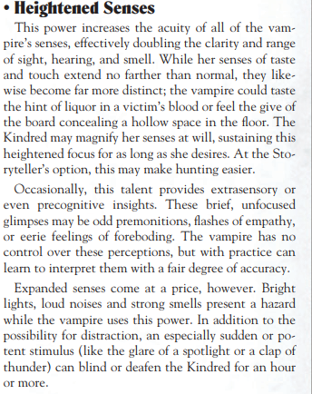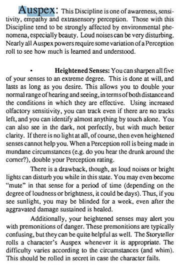 Кроме того дохуя spc сил для элдеров, celerity элдер сила, которая позволяет атаковать элдеру несколько целей, зависит от их blood potency -5, у мафусаилов celerity позволяет им доджить любую индивидуальную атаку, нужно 100 м радиус вокруг них ебнуть, чтобы им чёт было. Auspex сила у мафусаилов позволяет им сделать так, что если ты откроешь глаза, то ты видишь солнце и получаешь демедж как если бы ты видел солнце. Protean сила позволяет мафусаилу при смерти регенировать из животных в километре вокруг него. Protean для элдеров позволяет им игнорировать материал, который их атакует после того, как они получили им урон, так что им может быть похуй на свинец или дерево или сталь. Fortitude сила мафусаилов позволяет им перенаправить урон в их потомков. Oblivion сила позволяет им открыть черную дыру, которая жрет все вокруг в 30 метрах. И дохуя других сил.