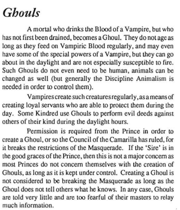 >>1634722 >perhaps something of what the society of Vampires is like >perhaps something >perhaps Ну т.е. про поколение, Каина и традиции он знает, а вот про сообщество - perhaps знает, а perhaps нет. И вот >только что выпущенный на волю птенец должен знать что да как превращается в >только что выпущенный на волю птенец возможно знает что да как B V20 написано следующее >all characters are assumed to >begin the game as neonate vampires who have only >recently left the safety of their sires’ protection with >no more than 25 years of experience as Kindred. They >know relatively little of Kindred society, other than >what their sires have told them Так что неонаты знают совсем немного, только общую базу.
