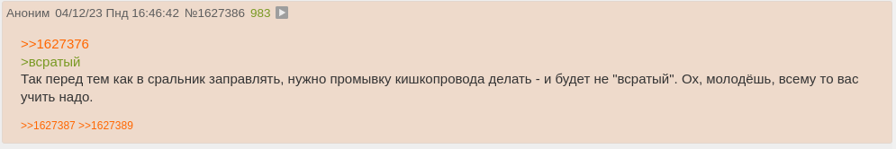 >>1636948 >РЯЯЯЯЯЯЯЯЯ Я НИШИЗ ТЫ ШИЗ Да, правда. Потому что копропидёрку качать надо, а эту хуйню я с ролки заскринил. Или ты решил, что я те же банальные манёвры вма не знаю? А учитывая тот факт, что ты буквально повторил мой гринтекст на максимально серьёзных щах - в этом вообще смысла нет, т.к. тебе только ударные дозы галоперидола помогут, стрелочница ебаная.