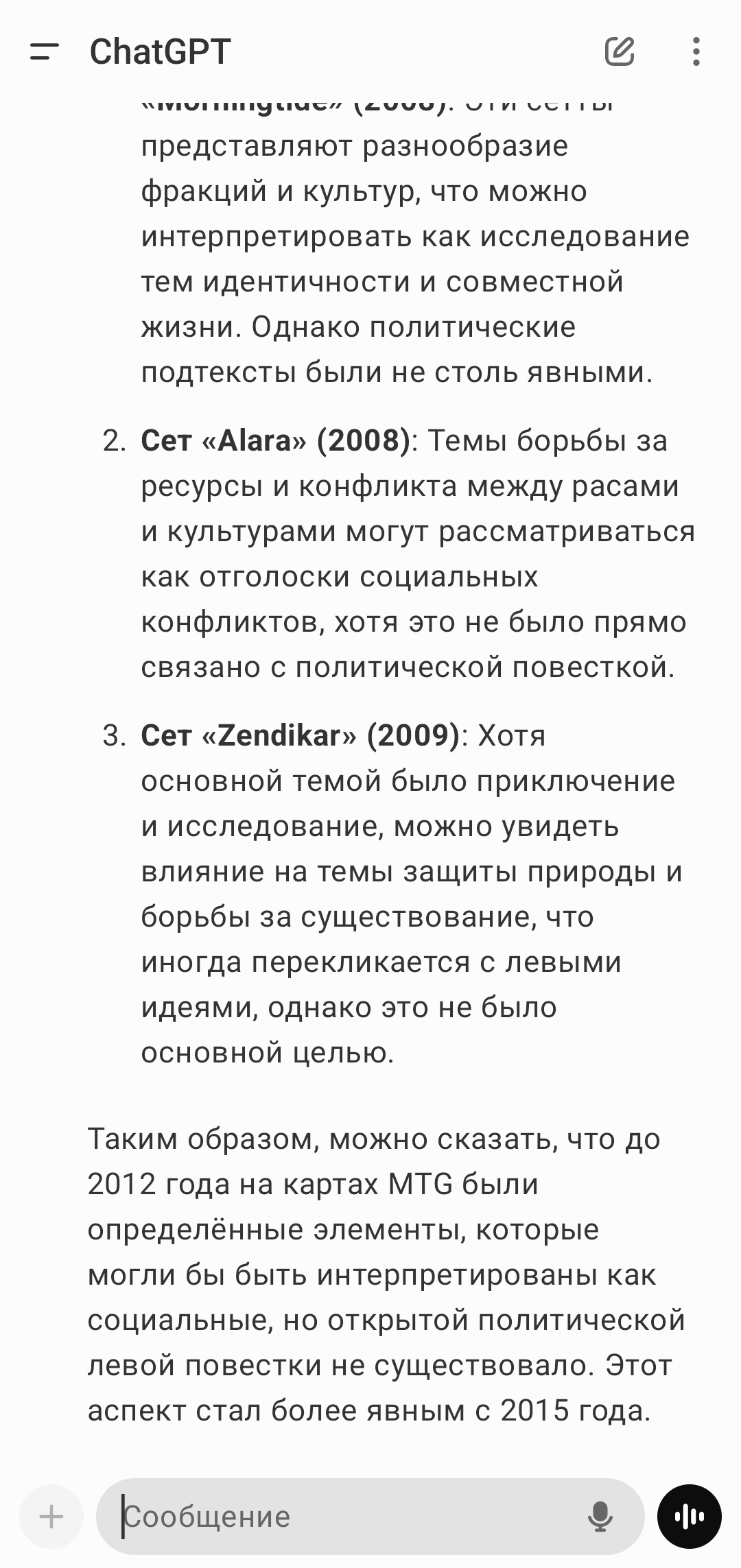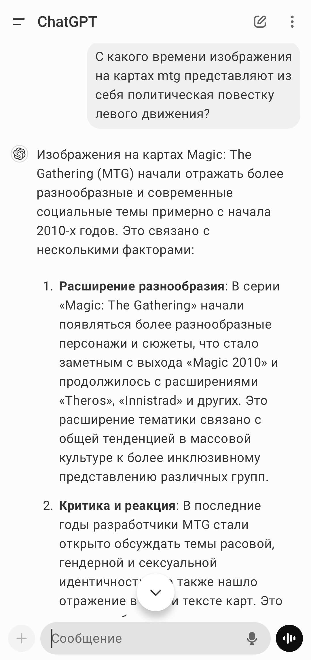 >>1638206 >навязчиво присутствует Хэйтеры "повесточки" делают точно так же, из каждого утюга. В половине всяких пабликов-ютабканалов через пост НУ ВЫ ПОСМОТРИТЕ ПОВЕСТОЧКА ЖЕ НЕ НУ ВЫ ПОСЛУШАЙТЕ вместо чего-то осмысленного или, на худой конец, смешного/оригинального. Одни и те же бородатые "шутки" про два/100500 гендеров, боевой вертолëт, вопросы про одноногую чернокожую трансженщину и т. д. , про жирных розововолосых феминисток, вой про квоты, про ужасное бэлэмэ и страшную культуру отмены, которая вот-вот всех отменит, надо только подожать. ЗА Е БА ЛО Собственно, и тут. Мне эту хуиту про страшную и ужасную повесточку на картах магии один-в-один вещал знакомый в 19-м, блядь, году, а когда я не впечатлился его воплями, стал мне точно так же доказывать что ПОВЕСТОЧКА ПЛОХО ТЫ ПРОСТО НЕ ПОНИМАЕШЬ как ебаный сектант.