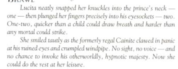 >Можно побольше контекста? Вампиры, гнущие железные клетки, которые оборотни сломать не могли? Читай каноничный комикс VtM - Lucita.
