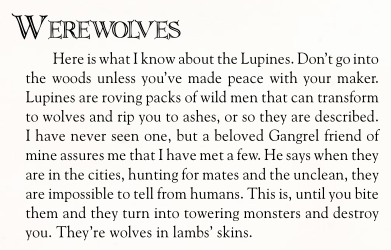 Что-то как-то в книгах слишком много нарратива крутится вокруг того что волчары пиздец опасные и с ними лучше не связываться, иначе порвут.
