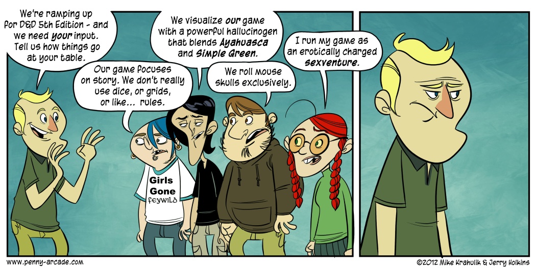 Всё это как ты понимаешь выливалось в бесконечные подъёбы друг друга прямо за столом, хотя группа у нас была сыгранная. Может поэтому мастер и не стал продолжать водить таких долбоёбов. Я не осуждаю.