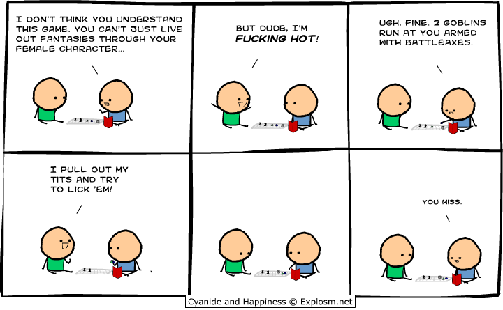>>1646175 А я писал в одном из прошлых, кажется, тредов. На одной из партий персонажи ходили на бал, где к паладину клеилась дракониха в человеческом обличье, а он ей не дал, плут-табакси лишился девственности с суккубом, друид трахнул служанку, чародейка - местного дворянина, и только второй плут умудрился все проебать, и очень смешно обзываться на суккуба шлюхой. >>1646172 Ну не без этого.