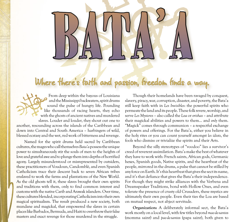 >>1647724 Почекай Lore of clans или кланбуки нужного клана. Например у Вентру есть обязательное правило помочь соклановцу, если тот попросит, например, пустить к себе убежище, даже если за ним по пятам бегут Шабаш и оборотни. У ассамитов, сетитов, равносов все сплавлено верой и идеологией клана. Ласомбры санкционируют суд крови с правом задиаблерить провинившегося, если у другого ласа есть претензия и он доказал, что его оппонент недостоинтм. Или высылают за охуевшим соклановцем спецгруппу по доставке на суд. У цимисхов и воеводы воевод и правило гостеприимства, и вообще политика к выращиванию потомства.