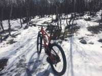 Перепад с -10 до +20 за три дня? Это континентальный климат, детка. Можно катать в футболке и шортах, падать в снег и прыгать через ручьи.С предыдущего падения помимо всего прочего я ещё и погнул переклюк, так что сейчас катаю на уникальной системе 1х6, с реверансом в сторону понижающих передач. Не разогнаться выше 20 км/ч, даже с каденсом 130, но я не дрочу на среднюю, так что норм.Большая часть лесов всё ещё недоступна, но имеем что имеем.