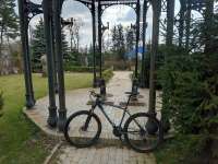 >В Битце сейчас только по тем же асфальтным дорожкам и кататься, только они ещё и все в лужах, все грунтовые тропы до сих пор в рыхлом тающем снегу.