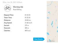 Ехали на расслабоне, собрали все грунтовки по максимуму, асфальтовый пробег получился от силы 5-10км, и только в поселках. 66 мой новый рекорд. Очень хотелось взять соточку, но на последних 5км я внезапно очень сильно сдулся, после еды и короткого отдыха стало понятно что я даже на 15км/ч по асфальту не смогу. Сдулся по части ног, сердце и дыхалка отлично.