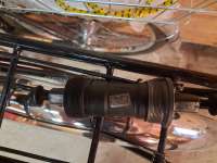 Вот родной картридж. Я поставил другой, по причине выхода из строя шлицов на пластиковой гайке с левой стороны. С этим новым картриджем вышла забавная история: продаван в магазе сказал мне, что он неразборный и добраться до правого подшипника можно только сломав картридж. Катай, мол, пока работает, а потом приходи за новым. 400 рублей, кстати. Ну да хуй с ним, пришёл в гараж, поддел тонким ножиком пыльник левого подшипника, гляжу-следы смазки есть, ну добавил трохи моей фирменной полуконсистентной бурды. Зажал серединку в тиски и тюкнул легонько по квадрату молоточком-не идёт. Завернул шатунный болт и пизданул чуть погромче. Вуаля-неразборный картридж разобрался. И что вы думаете? Правый подшипник оказался девственно стерильным. Смазал это дело как следует, собрал в обратном порядке и теперь катаюсь себе довольный. Такие дела. Кстати картридж мне впарили не 119, а 120 или даже 124, но всё работает, так что не сильно переживай за это.