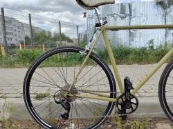 Очевидная альхонга. Ручки поставил, тормоза еще нет, и так пойдет. В качестве оплетки оставил родные металлические, сняв этот жгут задубевший. Чтобы кататься по фану по велодорожкам, рассекая ветер - поищи обода под узкие трубки и сами трубки, базарю, еще захочешь.