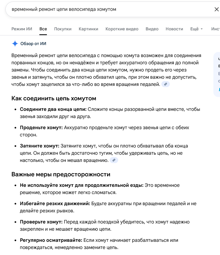 недавно рванула цепь (отходила до жтого придично), пришлось 5 км топать, теперь заменил, но вожу с собой в сумке выжимку на всякий. выжимка попалась вроде ок за копецки, но здоровая и тяжелая. есть ли какие-то способы временно починить цепь чтоб хватило на 5-10 км, ну типа стяжки-хомута?