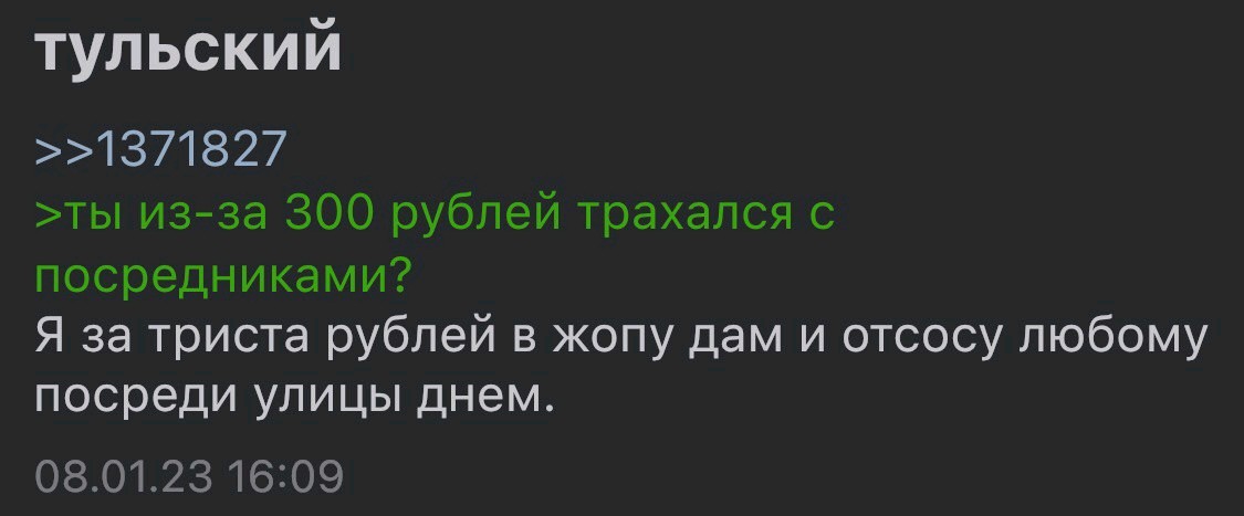 модерации ноль теперь или че там уже месяц? итт вакханалия одного или пары дебилов, из-за которых не хочется выходить из ридонли, а теперь вообще не хочется сюда заходить. и дело не в сезонности, а реально в паре желчных хуесосах из бэ, которые думают что они смешные и остроумные да, уебок, обязательно ответь что-то такое же остроумное на этот пост, я знаю, ты не удержишься, не мучай себя, минут на 10 тебе точно должно полегчать.
