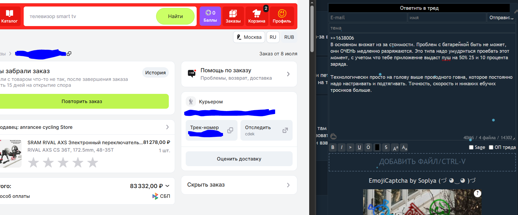 >>1637410 > А у китайцев всё плохо, ты сам лично на ютубе видел как это дядя рассказывает ртом, а он врать не может! Так и есть, даже у дорогих китайцев не все так прикольно как у западных производителей, ну за свою цену в 800 баксов за колеса - заебись вполне. Нище сегмент - печальный. Подсидел с 10000 отзывов и оценкой 10 из 10 на самом деле говно, точней он еще не треснул и на вид нормальный, но вот он флексит во все нахуй стороны. Судя по тому что я слышал про твиттеры это как раз такой же случай, тоесть байк реально МЯГКИЙ. Так нормальные велосипеды конечно не делают.