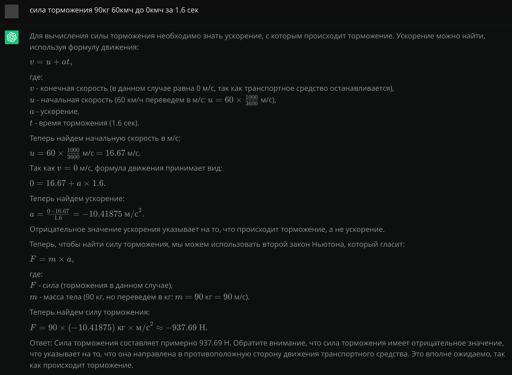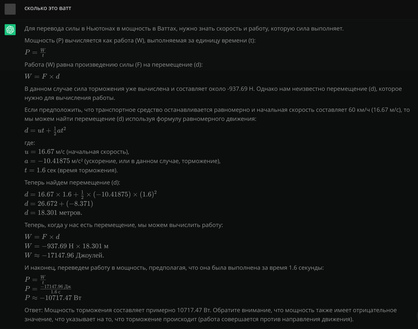 >>1429504 Ставить гирю в колесе на 3 киловатта чтобы тормозить ей, охуенный план. >тупые гуманитарные пёздочки >спрашивает вопрос по школьной физике у нейронки
