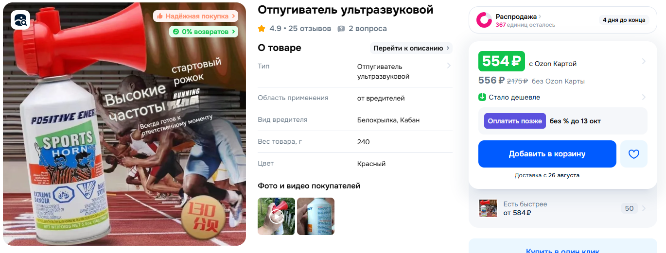 1. Ультразвуковой "отпугиватель". Очень не надежная штука. Хрен пойми как работает. Вроде иногда собаки и разбегаются, но чаще просто смотрят с недоумением: то ли сожрать его, то ли ну нафиг блаженный какой-то, вдруг больной, отравишься еще. Хотя, идея хорошая, думал раскошелится и купить за дорого, типа надежный, может быть у него ультразвук мощнее. Но видимо это так не работает. Даже у девайсов по 5К отзывы как у 300-рублевых, ниочемные.