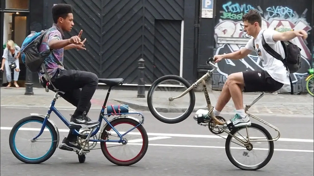 Представляю как люди окружающте со смеху покатывались, когда едет клоун на этой "стремянке", на треугольнике, пиздос))) Я всего один раз такого дурачка видел, чуть не обоссался со смеха)