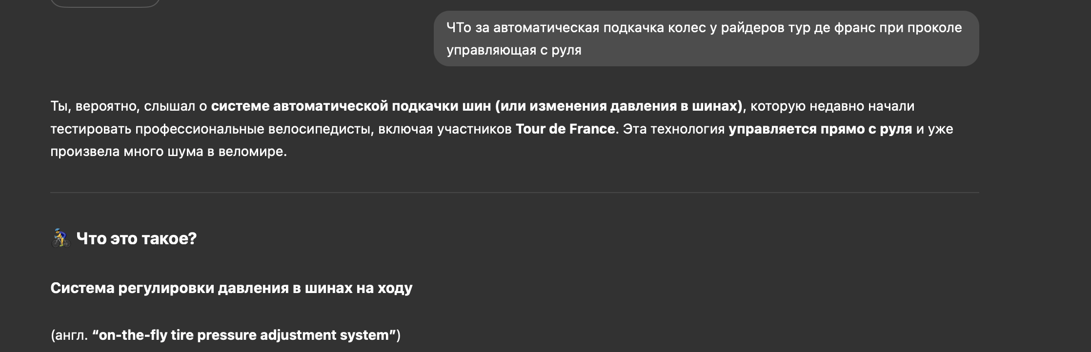 пиздос 7 лет не выезжал на шоссере на шоссе крутил станочек на шоссейнике все эти годы, с физухой норм фтп 240 ватт на 65 кило и вот решил выкатиться, снял кассету с нео, переставил на заднее колесо, поднастроил все и поехал покататься по двору. охуел с посадки сначала. ну потом по кварталу прокатился вроде привык, тормоза поднастроил и на следующий день прокатился 75 км спокойненько, чуть не пизданулся когда просто помахал челу, которого обгонял принял прохладный душ из его соплей в общем поясните мне уважаемые какие сейчас в шоссе тренды? у меня карбошоссер 2014 года от wiggle был тогда у них такой бренд Eastway купил за 42к просто подарок даже на те деньги 10 летней давности, китайкарбон колесы к нему с профилем 50 мм покрышки 23 мм, повермитер есть. ну тренировался-катался с 2012 по 2018, потом чот на фэты пересел и норм было, заебал трафик на дорогах покупать каньон за 400к не хочу, свой вел нравится но как-то даже хз больше 10 лет ему морально уж устарел конечно