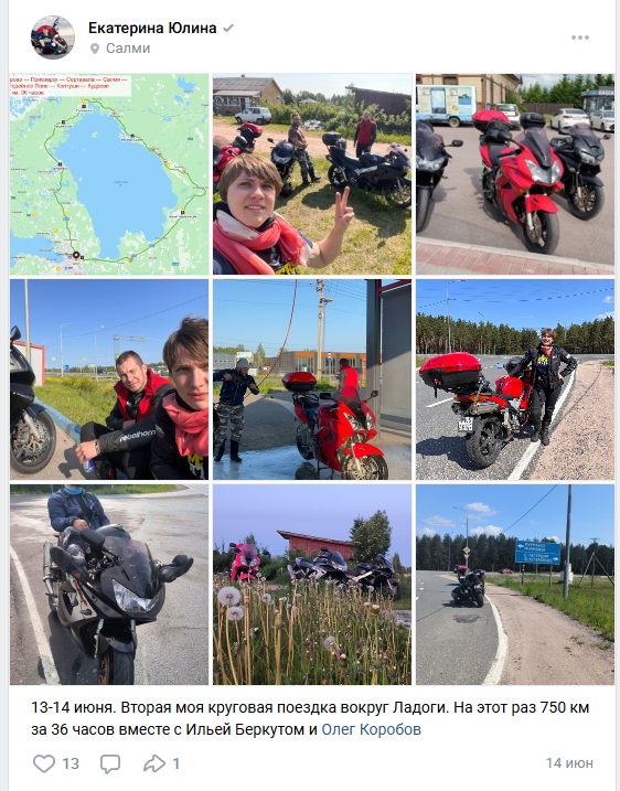 Не, ну можешь показать НАСТОЯЩИЕ покатушки на мотоцикле. Вот мотоциклистка, гонщица, спортсменка, штурман на авторалии, 750км на мотоцикле за 36 часов. По асфальту. Ты больше ездил?